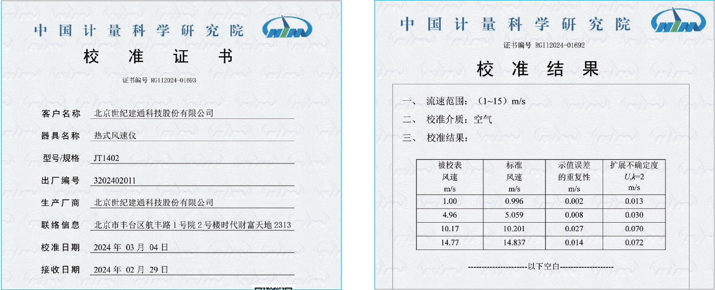 ? ? ? ?JT14XX系列風(fēng)速傳感器擁有出色的測(cè)量精度,在計(jì)量院實(shí)驗(yàn)室條件下測(cè)量結(jié)果均優(yōu)于我司標(biāo)稱精度,JT14XX系列風(fēng)速傳感器出廠標(biāo)定結(jié)果可溯源至中國(guó)計(jì)量院(多普勒流速儀)。