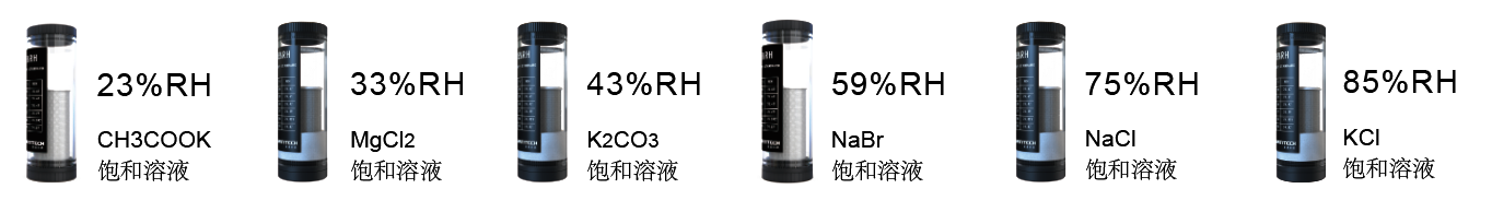 23%、33%、43%、59%、75%、85%(20°C時)(每個鹽罐對應一個標準值) |