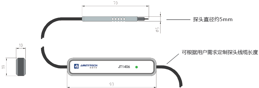 JT1406全向風速傳感器,具有較高的三維方向均勻性。同時采用最大直徑約5mm的微型特別封裝結構,適用于電氣設備、FFU等內部狹小空間。電路具備標準RS485輸出,電路部分長度僅93mm,具備一定的防護性能,易于集成使用。