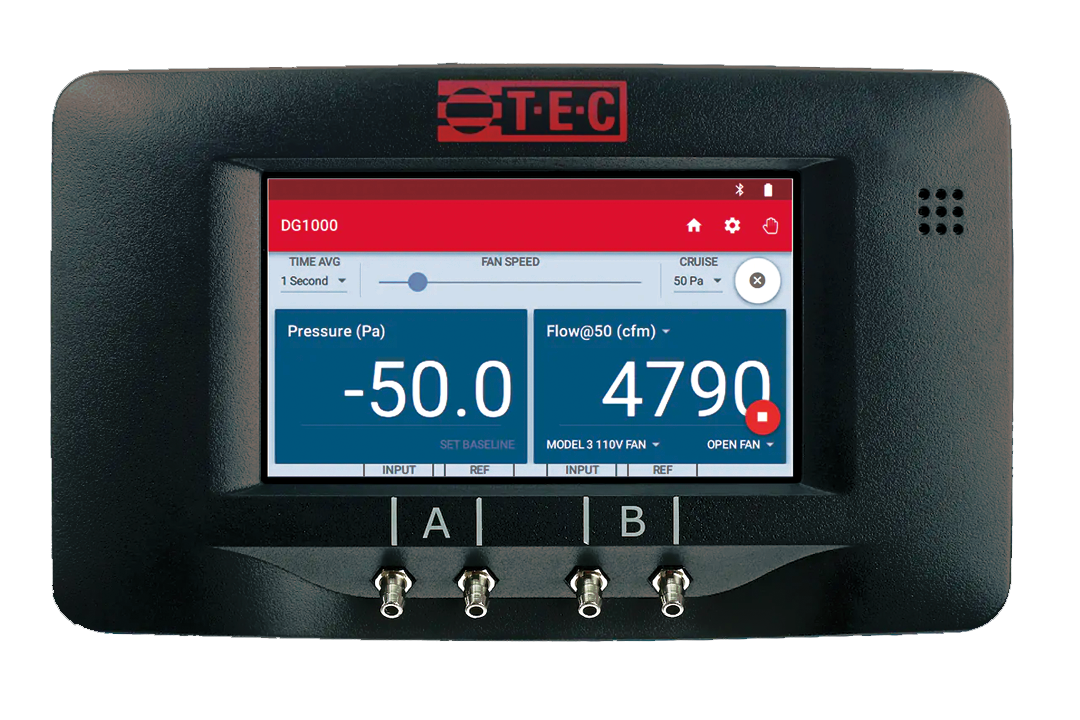 DG-1000數字式壓力流量表 用于壓力和流量測量的雙通道數字微型壓力計。主要用于明尼阿波利斯鼓風機門? 和明尼阿波利斯管道氣密性系統? 要獲得最新功能,只需在連接到互聯網時點擊DG-1000主屏幕上的更新按鈕。 最新更新提高了性能并啟用了新功能 使用自動調光功能將電池壽命延長25%以上 增強的藍牙連接和狀態信息 具有英寸水柱單位小數點后4位顯示的高精度模式 其他功能