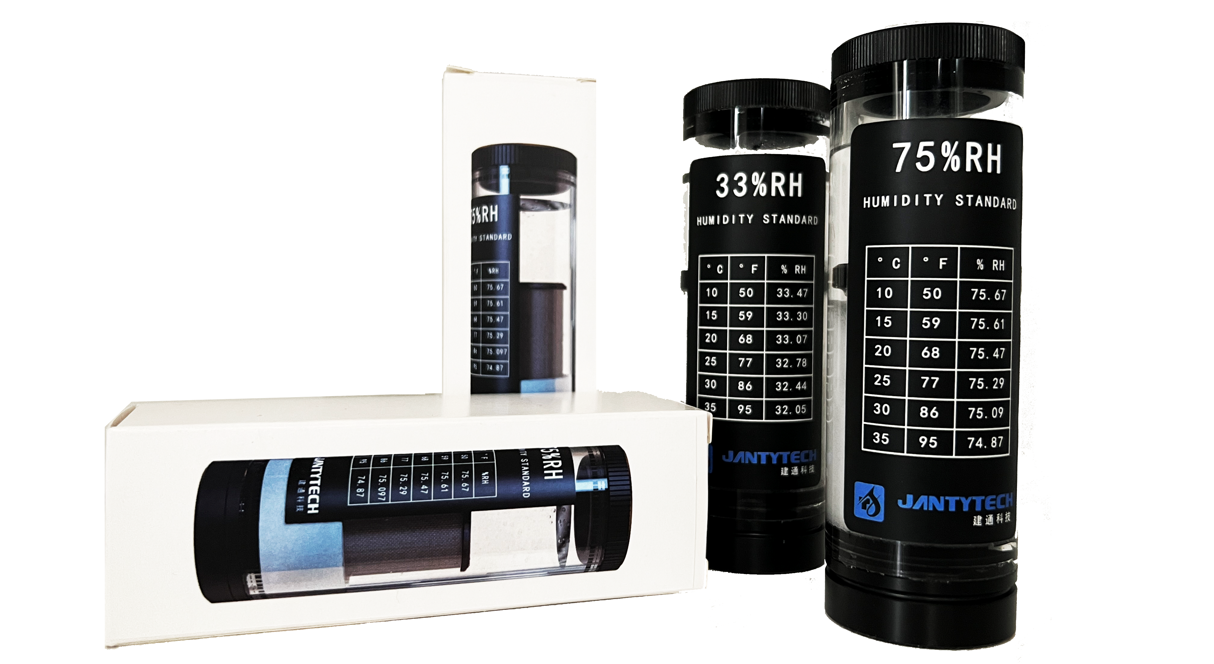 JT8040-23/33/43/59/75/85提供6種飽和鹽溶液選項,從23%~85%,適用于直徑13~16mm的濕度探頭