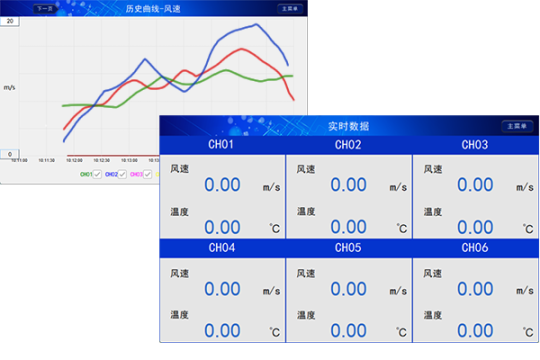 大屏幕觸控屏幕,可同時顯示風(fēng)速及溫度測量數(shù)值