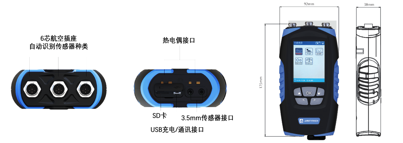 建通科技在十余年的便攜儀器開發(fā)經(jīng)驗(yàn)基礎(chǔ)上,開發(fā)了JT2020多功能便攜智能儀表,一表多用,實(shí)現(xiàn)了集多種參數(shù)、多種規(guī)格傳感器于一表的功能,傳感器接入類型自動(dòng)智能識(shí)別,接口共用。本儀器還增加了藍(lán)牙無(wú)線通信功能,可擴(kuò)展多達(dá)20個(gè)以上的無(wú)線傳感器同時(shí)接入。同時(shí),JT2020多功能測(cè)試儀,具備相關(guān)行業(yè)的算法,實(shí)現(xiàn)相關(guān)專業(yè)指標(biāo)的測(cè)試,如在職業(yè)衛(wèi)生領(lǐng)域高溫作業(yè)(work in hot environment)環(huán)境中的WBGT熱指數(shù);暖通行業(yè)的IAQ測(cè)試、風(fēng)量測(cè)試等,儀器配置相應(yīng)的傳感器即可完成專業(yè)測(cè)試。