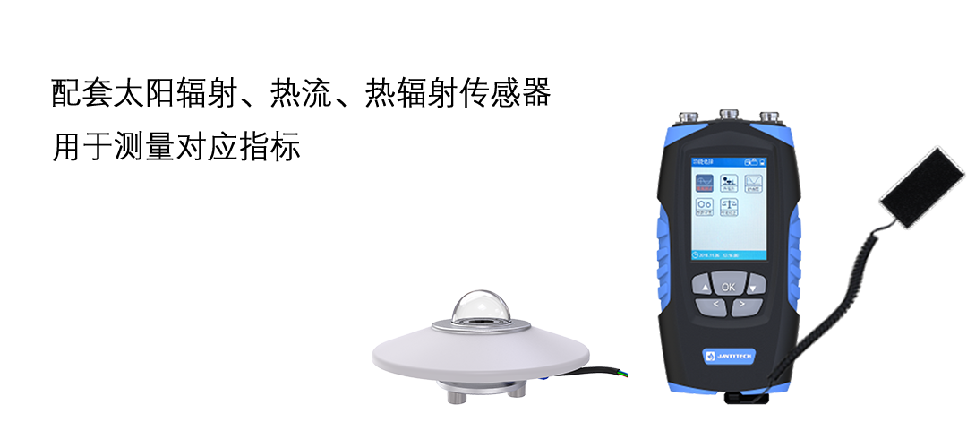 作為太陽(yáng)輻射儀或輻射熱/熱流計(jì)使用 JT2020底部的2路模擬量通道(電壓信號(hào))可以接入太陽(yáng)總輻射、熱流、輻射熱傳感器 用于測(cè)量太陽(yáng)輻射、熱流或輻射熱通量值 該接口使用3.5mm通用音頻插頭接口,實(shí)現(xiàn)快速插拔 用戶可以使用電壓輸出的同類無(wú)源傳感器接入該儀表(需保持接線定義一直) 通過(guò)JT2020內(nèi)置的修正系數(shù)設(shè)置對(duì)傳感器進(jìn)行系數(shù)調(diào)整,使其讀數(shù)正確 輻射熱傳感器 測(cè)量范圍:0~2KW/m2 輸出信號(hào):電壓(μV) 太陽(yáng)輻射傳感器 靈敏度 :7~14μV / W/m-2 信號(hào)輸出:0~20mV 測(cè)試精度:≤±5% 熱流傳感器 測(cè)量范圍:0~2000W/m2 靈敏度:23.26-35W/m2·K